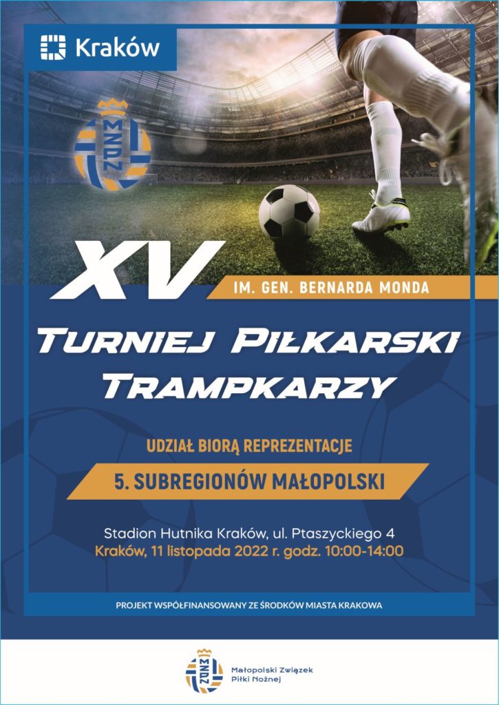 Z okazji 104. rocznicy Odzyskania przez Polskę Niepodległości w roku 1918 Małopolski Związek Piłki Nożnej w Krakowie organizuje XV Turniej Piłkarski Trampkarzy im. Generała Bernarda Monda. Sportowa rywalizacja będzie miała miejsce 11 listopada br. na stadionie Hutnika Kraków.