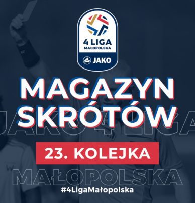 Bilans 23. kolejki JAKO 4 LIGI MAŁOPOLSKIEJ to 26 goli, 4 zwycięstwa gospodarzy, 3 gości i 1 remis. Zapraszamy na cowtorkowy MAGAZYN SKRÓTÓW, godzina 19! A w nim m.in.: kuriozalny gol Unii i 17. trafienie Seweryna; Słonie przegrywały do 87. minuty 0-1, by wygrać 3-1; kontrowersje w Ryczowie; mecz w Rabce zaczął się w… doliczonym czasie; najpiękniejsza bramka w Myślenicach?