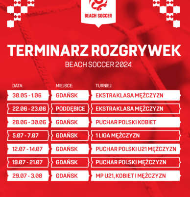 Komisja Futsalu i Piłki Plażowej PZPN informuje, iż w tym roku przeprowadzone zostaną rozgrywki Beach Soccer 2024, których terminarz przedstawiamy na załączonym powyżej plakacie. W załączniku formularz zgłoszeniowy z niezbędnymi informacjami dotyczącymi rozgrywek.Szczegółowe informacje wkrótce będą dostępne na oficialnej stronie PZPN. Formularz zgłoszeniowy TUTAJ