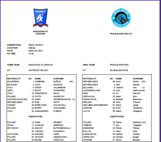 Dzisiejszy rywal Dragoons – Praga Raptors to również międzynarodowy klub amatorski. To mocny przeciwnik, finalista pierwszej edycji FENIX TROPHY. W ubiegłorocznym finale Raptory przegrały w Rimini z FC United of Manchester 0-2.