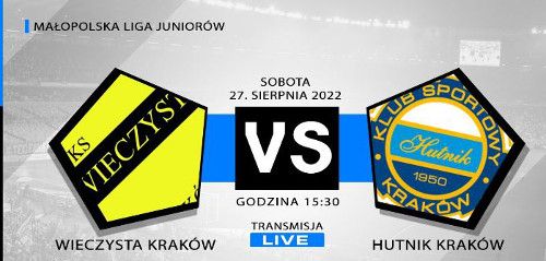 W sobotę, 27 sierpnia, CFSport przeprowadzi transmisję z meczu Małopolskiej Ligi Juniorów. Wieczysta Kraków zagra z Hutnikiem Kraków.