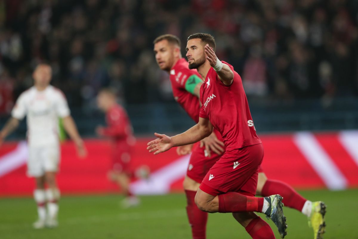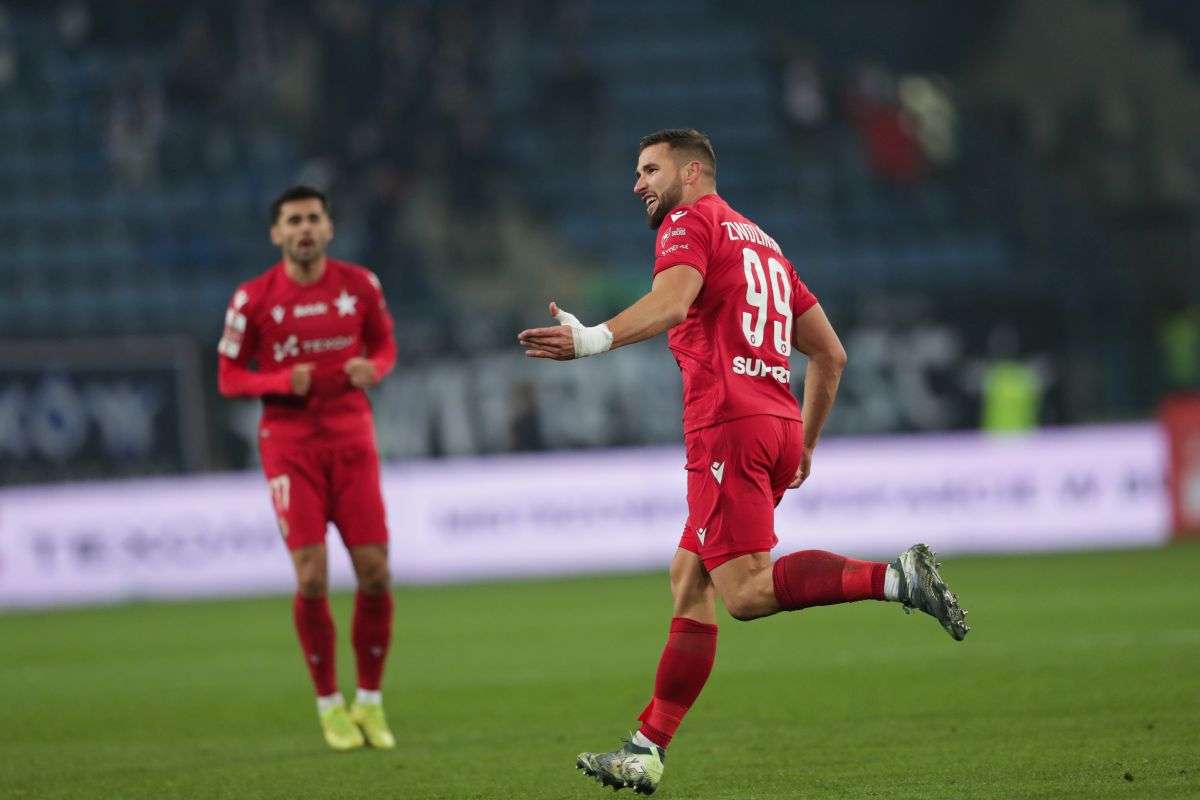 W I lidze Wisła pokonała ŁKS 2-1, dwa gole zdobył Łukasz Zwoliński. Fot. Grzegorz Wajda