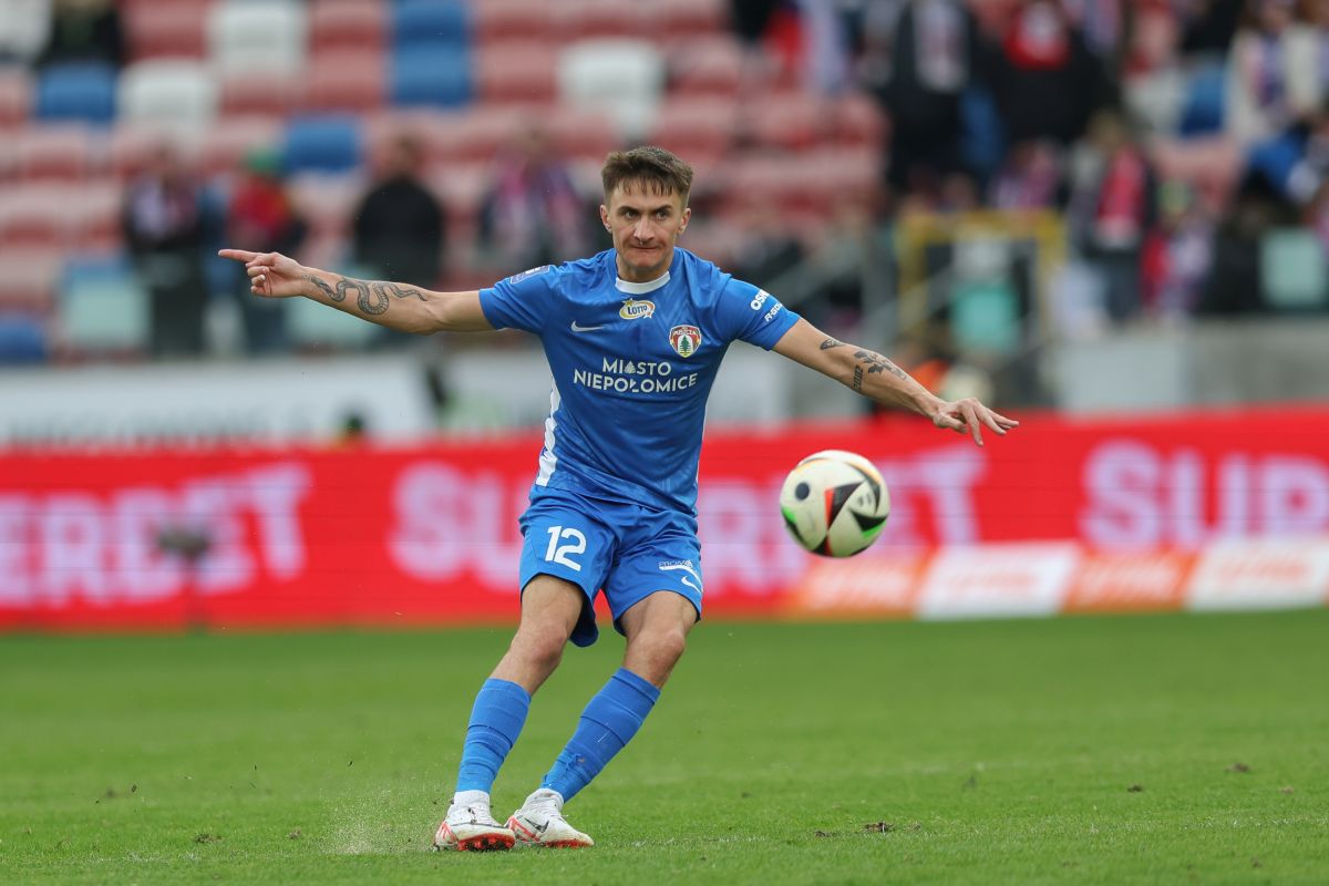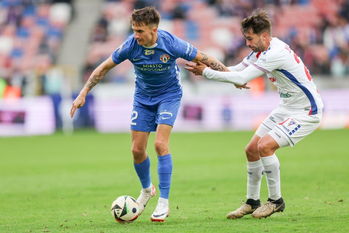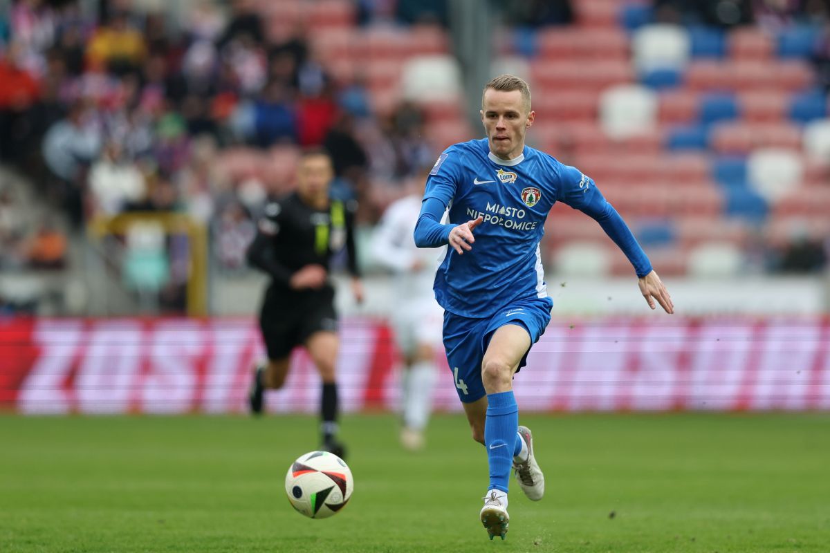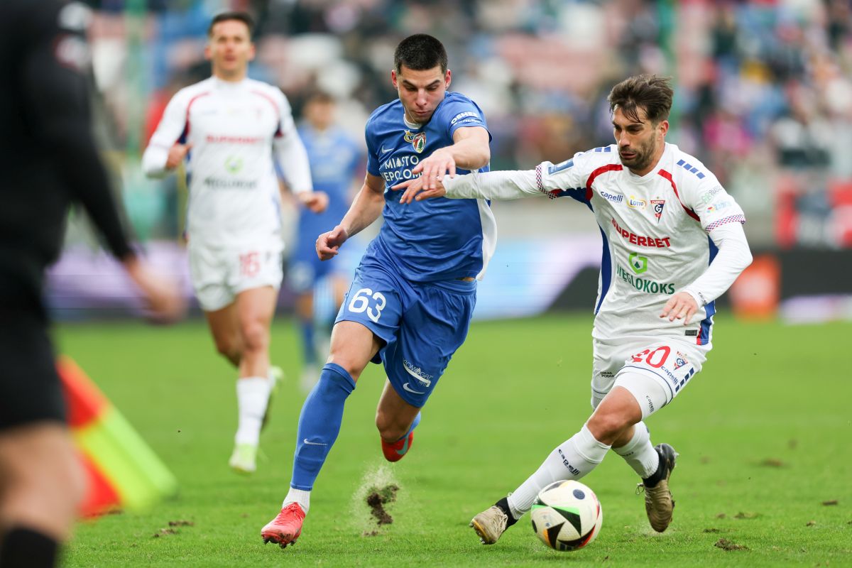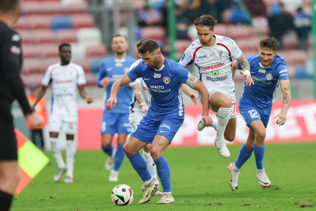 Za chwilę padnie gol dla Puszczy w meczu z Górnikiem w Zabrzu. Fot. Grzegorz Wajda