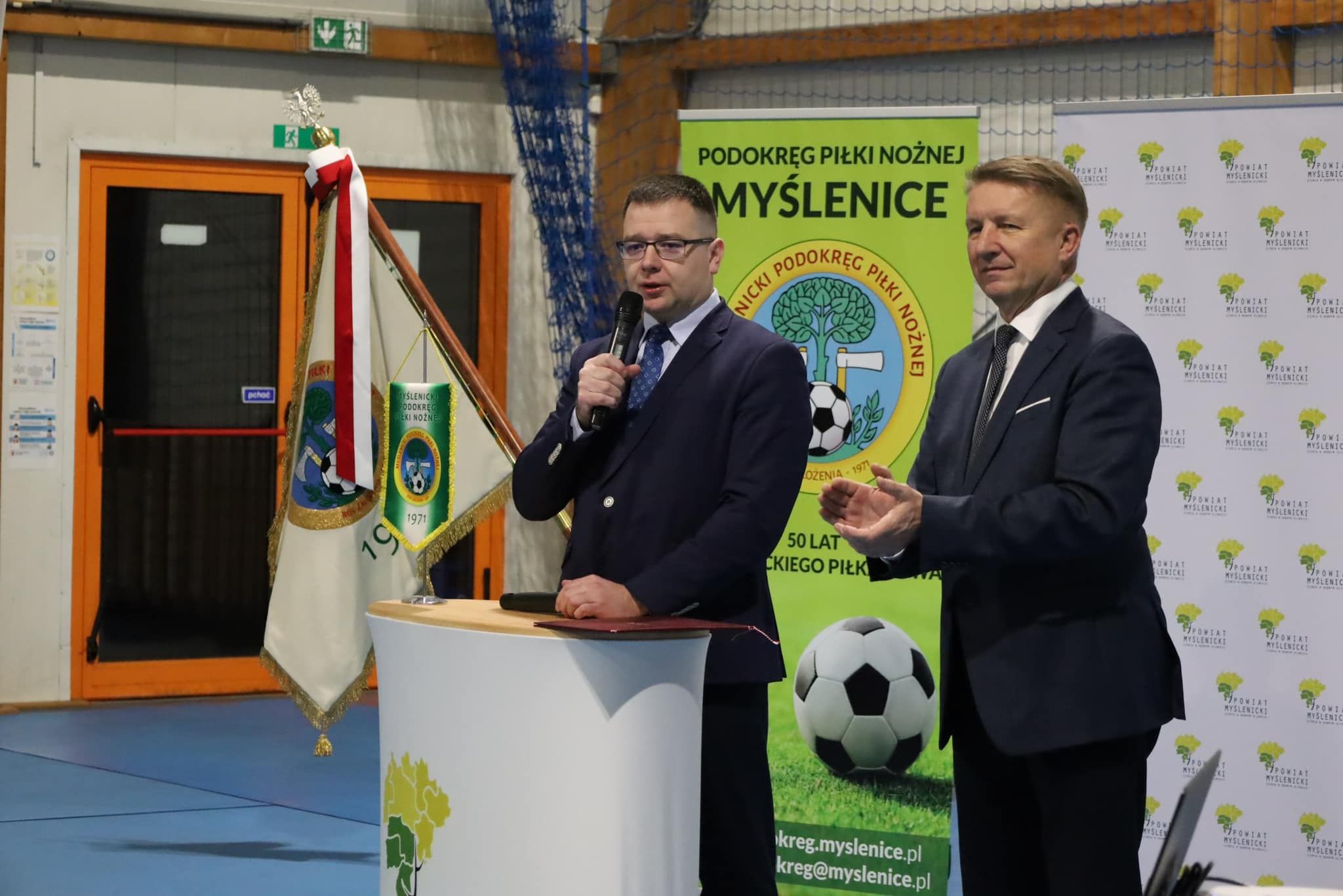 Po akcie nadania nastąpiły przemówienia zaproszonych gości. Pierwszy z szanownego gremium głos zabrał prezes MZPN Ryszard Kołtun. W swojej wypowiedzi pogratulował zarządowi Podokręgu pozyskania sztandaru, podkreślając ważny charakter działalności okołopiłkarskiej dla lokalnej społeczności i przekazując okolicznościowe życzenia. – Sztandar to symbol tradycji i historii, jego ufundowanie oznacza najwyższe uznanie społeczne dla organizacji – powiedział, przypominając zasługi wybitnych piłkarzy braci Różankowskich, czy pochodzących z ziemi myślenickiej trenerów Moskala i Fornalika.