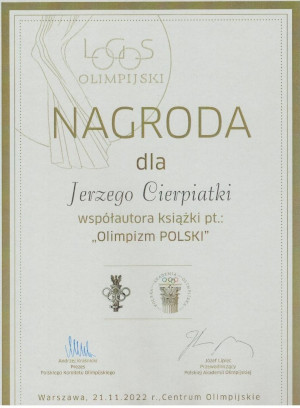 Punktem kulminacyjnym uroczystości było nagrodzenie autorów książki „OLIMPIZM POLSKI” – wydanej z okazji 100-lecia PKOl., obszernej – liczącego blisko 700 stron publikacji przygotowanej pod redakcją naukową prof. Józefa Lipca. W gronie autorów książki znaleźli się ówcześni członkowie Zarządu Małopolskiego Związku Piłki Nożnej, redaktorzy Jerzy CierpiatkaJerzy Nagawiecki, którzy przygotowali rozdział zatytułowany: „Olimpizm w publicystyce i felietonistyce”.