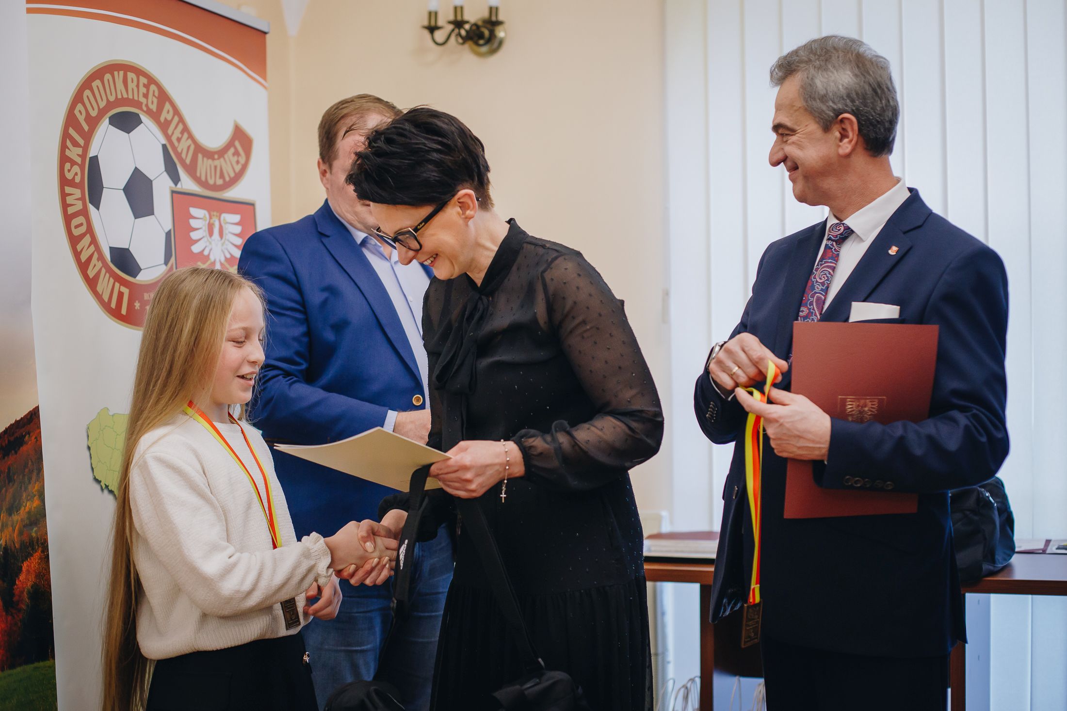 Laureaci w kategorii TALENTY PIŁKARSKIE: Bartłomiej Kałużny, Weronika Kaim, Wiktoria Kocoń i ojciec Wojciecha Urbańskiego