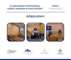 13 kwietnia odbyła się w Krakowie IV Ogólnopolska Konferencja Naukowa Prawa Sportowego „Dzień z Prawem w Piłce Nożnej”. W ramach podsumowania organizatorzy – stowarzyszenie studenckie ELSA Kraków – przedstawili kilka ważnych liczb: mieliśmy zaszczyt gościć 13 wybitnych ekspertów oraz 6 występujących studentów i doktorantów odnotowaliśmy 75 rejestracji uczestników biernych w szczytowym momencie na sali przebywało ponad 50 słuchaczy podczas Konferencji wymieniono niezliczenie wiele […]