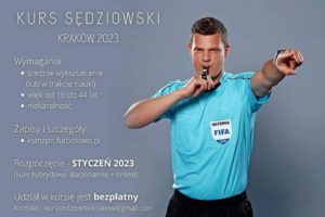 Uwaga, Kraków! Zawsze marzyłeś/aś o zostaniu sędzią piłkarskim? Kolegium Sędziów Małopolskiego ZPN zaprasza do wzięcia udziału w kursie sędziowskim! Zapisy już ruszyły, początek kursu zaplanowano na styczeń 2023. Zapisy: https://forms.gle/82xt8wkxp3mXh7Yn8 Dokumenty do pobrania: https://ksmzpn.futbolowo.pl/kurs-sedziowski-2023