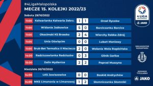 W 15. kolejce JAKO 4. LIGI MAŁOPOLSKIEJ trzynaste zwycięstwo w tym sezonie odnieśli piłkarze lidera – Wiślan Jaśkowice. W Skawinie, gdzie grają, rozgromili beniaminka z Barcic 5-0. Koncertowy występ zanotował Adisa Monsuru. Wiślanie Jaśkowice – Barciczanka 5-0 (1-0)1-0 Krasuski 282-0 Dynarek 52 karny3-0 Adisa 554-0 Adisa 645-0 Cholewa 74Sędziował Dawid Kogut. Żółte kartki: Głaz – Bonalde, A. Basta, Ciężobka. […]