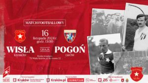 Grafika: facebook.com/HistoriaWisly Stowarzyszenie Historia Wisły organizuje wielki mecz jubileuszowy: WISŁA ZAGRA Z LWOWSKĄ POGONIĄ! Zapraszamy w sobotę, 16 listopada 2024, o godz. 13 na boisko trawiaste TS Wisła, ul. Reymonta 22. Retro mecz na footbalowych zasadach z lat międzywojennych rozegrany zostanie dokładnie w setną rocznicę wizyty Marszałka Piłsudskiego na stadionie Wisły. Zawody odbędą się 16.11.2024, na boisku trawiastym TS Wisła przy Reymonta 22 (dawny tor wyścigowy, gdzie rozgrywała […]